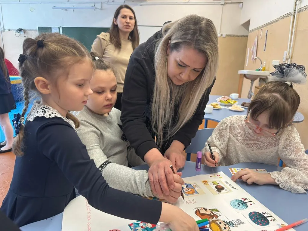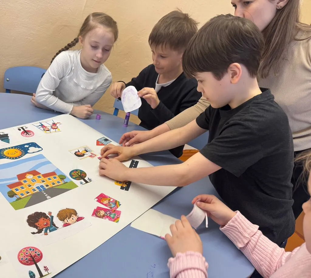 А дальше 7 смелых и добрых учеников из 1 «Б» вместе с нами отправились в гости в 1 «Р» к ребятам с РАС. Никаких неловкостей и волнения - в первые 5 минут все перезнакомились, обнялись и дали друг другу пять 🖐️, вместе поиграли в игровой зоне и сделали коллаж про идеальную школу — туда попали качели, много веселых детей, немножко морских звезд и бабочек (а почему бы и нет? 😁), деревья радости и ладошки дружбы.