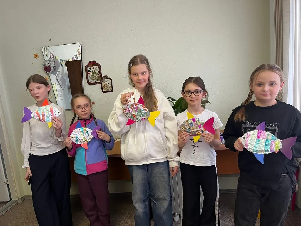 Ребята и подростки с большим энтузиазмом подошли к творчеству: кто-то клеил, кто-то раскрашивал, а фантазии не было предела! Каждая рыбка получилась уникальной — чешуя, плавники, яркие краски.